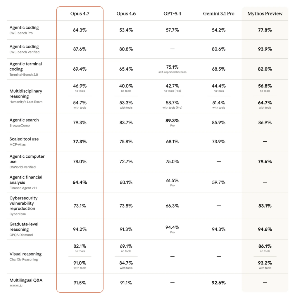 Building on the large-context capabilities of previous releases, Opus 4.7 continues to improve on how these extended tasks are managed. The model still supports up to one million tokens of context, while a 64.3% score on SWE-bench Pro signals stronger performance on real-world tasks.