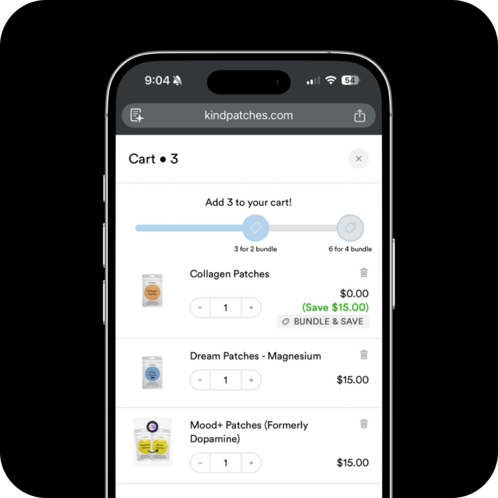 Working closely with Aftersell, Avenue Z helped Kind Patches expand post-purchase and checkout-stage offers, using high-intent moments to surface relevant add-ons and one-click upsells. The result was incremental revenue per order, improved blended efficiency, and backend performance insights that now inform bundle strategy, paid media decisions, and long-term LTV planning.