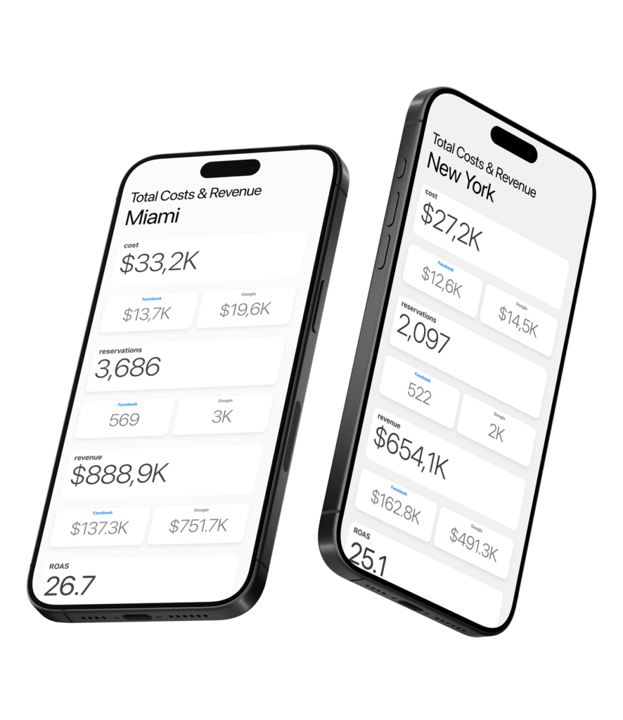 - Creative and Performance Optimization: Avenue Z consulted on creative strategy and campaign structure to maximize reservation conversion efficiency and improve acquisition performance across markets.